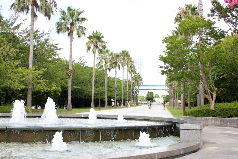 木が密集してないので日影は少なく暑いですが、適度に抜ける潮風がとても夏らしくてベンチでちょっと休んでしまいました。噴水もあり想像よりも少しだけ涼しい。