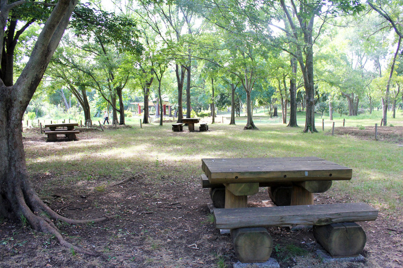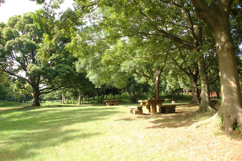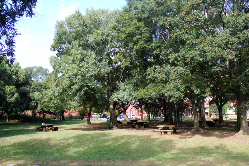 大きな木が多く離れて植わってるので日も良い感じに当たります。芝生も多く見渡しも良くて驚きました。木と緑の青々とした涼しさを感じる良い場所ですよ。