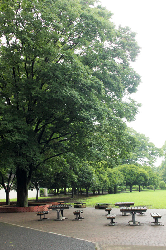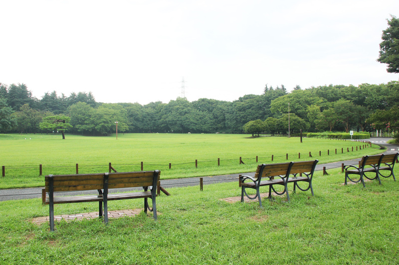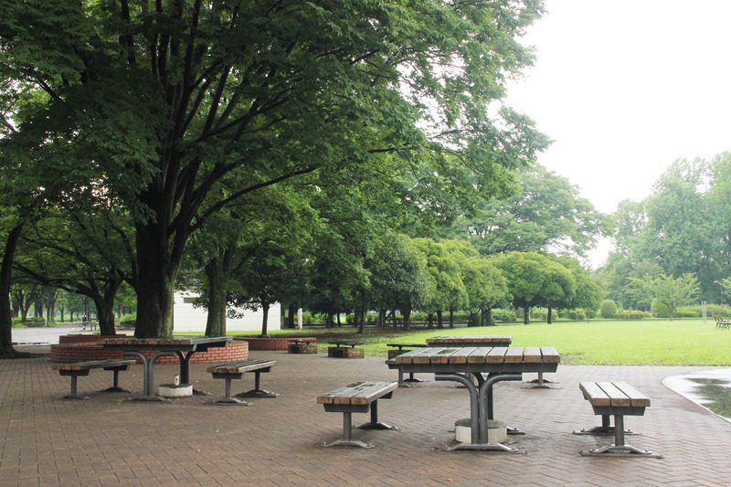 広々としたこどもの広場の近くに休憩用のベンチやテーブルなどが設置されています。芝生と木立に囲まれて青い空の下ベンチに腰掛けながら風景を楽しく涼めます。