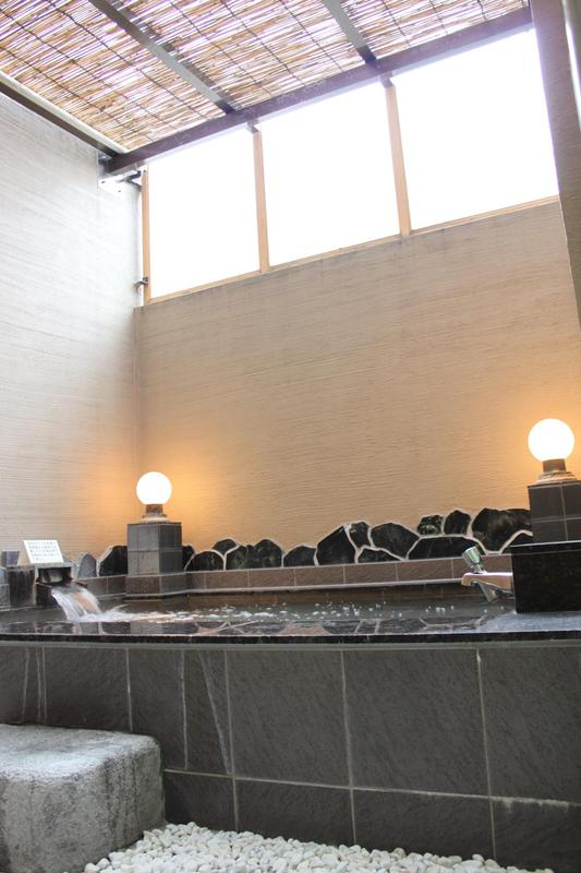 - 大浴場はバリアフリーで温泉風、女湯は歩行湯、男湯露天風呂あり。TX青井駅9分